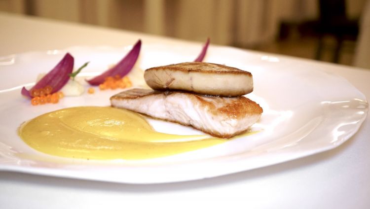 Ad arricchire un piatto classico dei Serva, le note di vaniglia che accompagnano la salsa di pesche, poi purea di pastinaca e uova di trota. Eleganza pura.