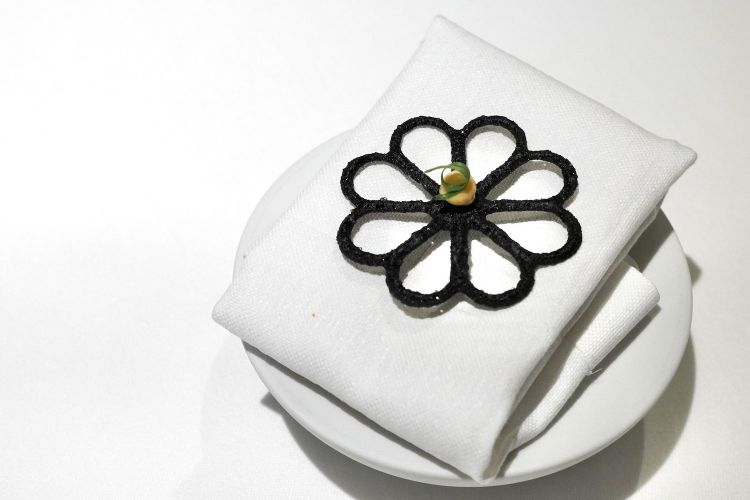 Airbag al carbone vegetale, purea di topinambur, tartufo nero e prezzemolo