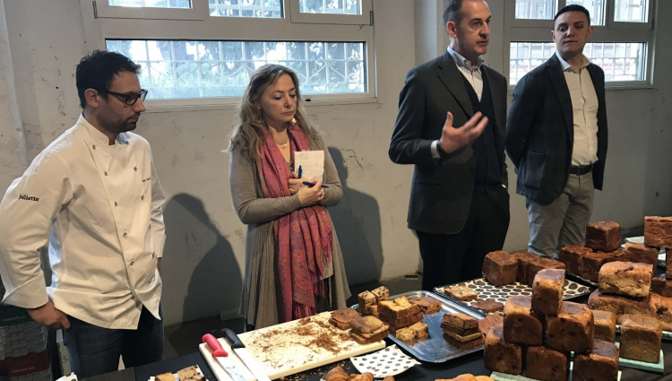 Riccardo Uleri, Amministratore Delegato di Longino & Cardenal (il secondo da destra), presenta la giornata organizzata a BASE Milano. Con lui Marc Marti di Triticum: panificatori di Barcellona che riforniscono alcuni dei ristoranti stellati più importanti di Spagna, iniziando dal Celler de Can Roca
