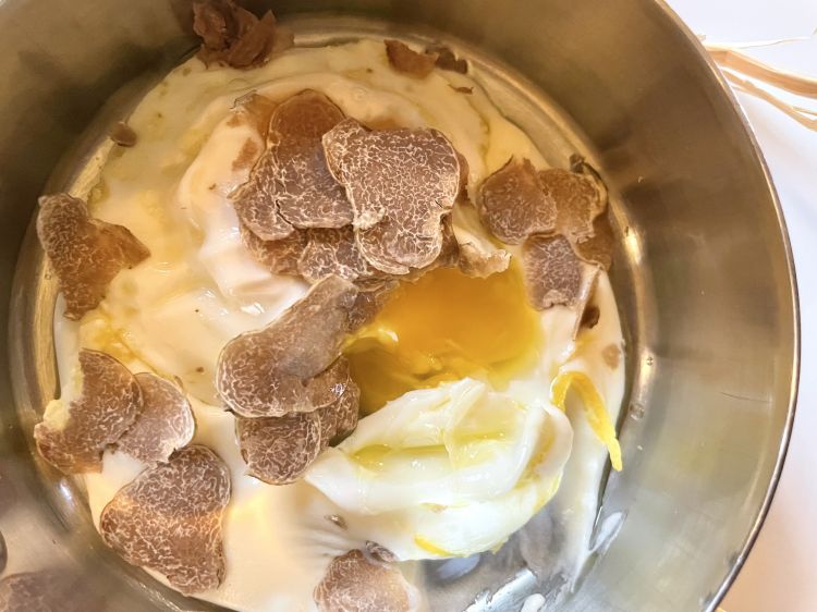 Uovo di gallina ruspante all’occhio di bue, patate, limone e tartufo