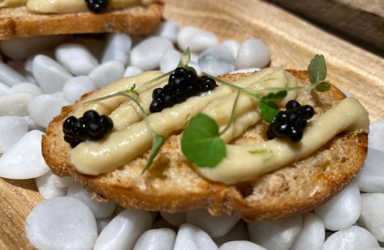 Aperitivo in cantina: Gambero rosso di Mazara Selezione Paolo Giacalone, stracciatella e il suo corallo