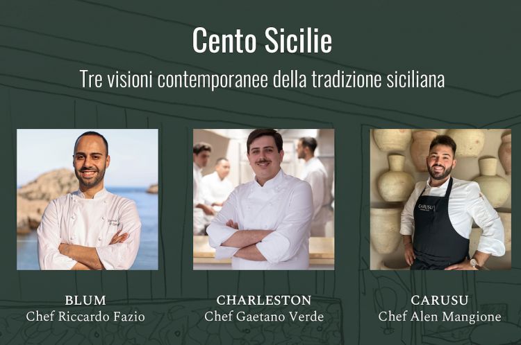 Giovedì 29 febbraio il ristorante Charleston di Palermo, nella sua versione completamente rinnovata, sarà l’elegante sede di un’esperienza gastronomica che avrà per protagonisti tre giovani chef che ben rappresentano la nuova cucina di Sicilia: Gaetano Verde, padrone di casa, Riccardo Fazio del Blum, ristorante fine dining all’interno del Mazzarò Sea Palace a Taormina, parte della collezione VRetreats, e Alen Mangione del Carusu Restaurant ad Agrigento. Il titolo dell’evento, "Cento Sicilie", prende ispirazione da un celebre romanzo dei rinomati scrittori siciliani Nunzio Zago e Gesualdo Bufalino per riprendere il loro viaggio affascinante attraverso i diversi volti dell’isola a tre punte.