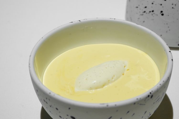 Suadente ed elegante il Rombo alla mugnaia, prezzemolo, burro nocciola, polvere di limone, pomme soufflè. Si conferma tra l'altro l'eccellenza del prodotto