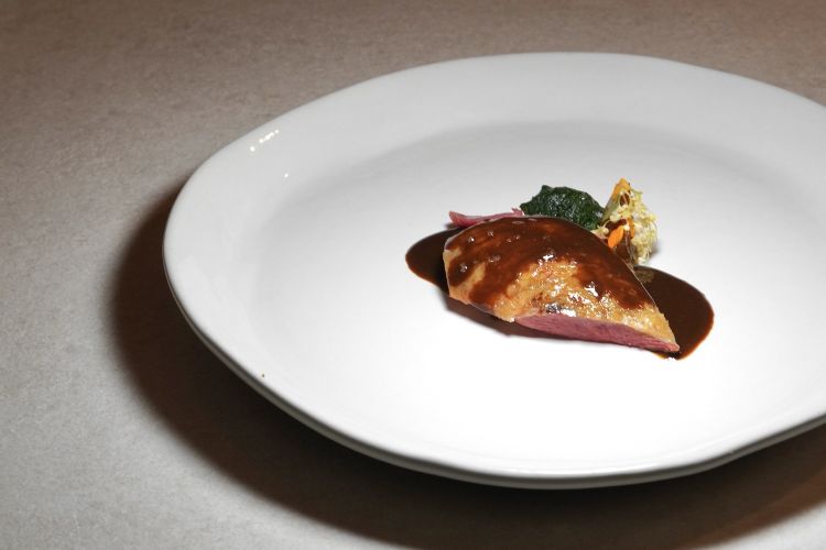 Carnaroli, aringa affumicata, frutto della passione, caffè, cardamomo verde) risulta goloso e piacevole; nel piccione, cotto come si deve, spicca un fondo con il suo fegato e il Verjus.