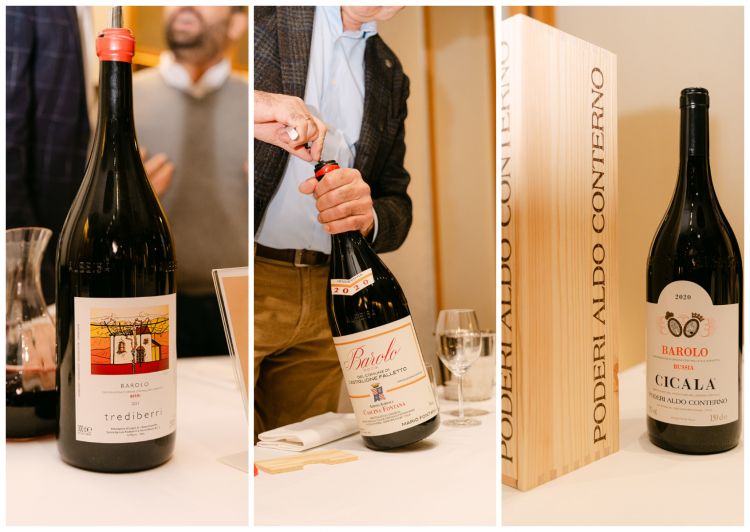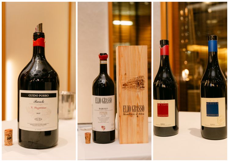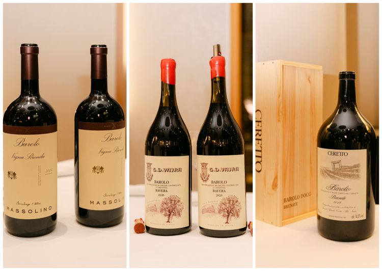 La sala del ristorante Berton si è trasformata in un teatro del vino dove spiccavano grandi formati di Barolo, da Magnum a Doppio Magnum, per un viaggio di elevazione di questo cru piemontese famoso in tutto il pianeta.