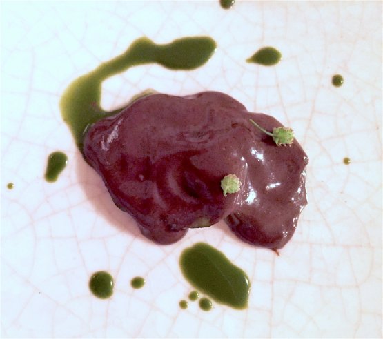 Cioccolato di sorgo con kiwi e alloro (i kiwi, frutto “esotico” ma del quale l’Emilia Romagna è uno dei massimi produttori mondiali, sono ricoperti della crema al falso cioccolato): anche in questo caso niente cacao, solo talento allo stato puro. Un'idea presentata all'ultima edizione de