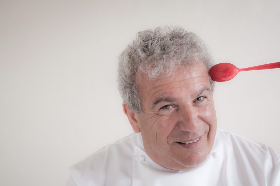 A parte la pasta fresca all’uovo, il risotto è l’altra preparazione che non manca mai nel menu del mio ristorante. Per preparare questo risotto utilizzo tre varietà di pomodoro che trasformo in succo, gelato, aria, confit e polvere, per questo ho chiamato il piatto Tuttopomodoro. Oltre a ottenere un piatto ricco di contrasti: caldo e freddo, morbido, areato e croccante; è per me anche un modo per mostrare come il pomodoro si può utilizzare per altre preparazioni che non siano solo insalate e pasta.