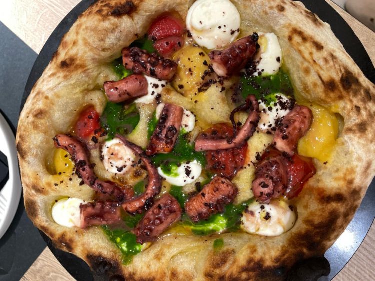 C'è un gusto personale che attraversa tutto: la curiosità per le consistenze, le spume leggere, le polveri aromatiche, le cotture ibride. Ma la traiettoria resta leggibile, mai criptica. L'esperienza è costruita come un racconto: il ritmo delle uscite, il dialogo col servizio, il design che accompagna senza sovrastare. È il tentativo — riuscito — di dare alla pizza un contesto narrativo, oltre la somma degli ingredienti.