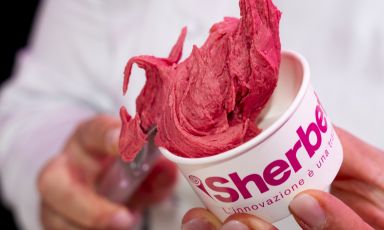 E c’è anche un segreto che rende tale sorbetto fantastico. Deriva da un’estrazione a freddo delle amarene, in parte denocciolate e in parte con il suo seme che, come fosse un’armellina, dona note suadenti, sinuose, «così senti tutto: il legno, il seme, il succo, la polpa». Altra particolarità: normalmente un gelato prima viene consumato e meglio è; in questo caso l’ideale è invece farlo riposare una notte, «si tratta di uno di quei gusti che hanno bisogno di attesa perché possano esprimersi appieno». Il laboratorio
