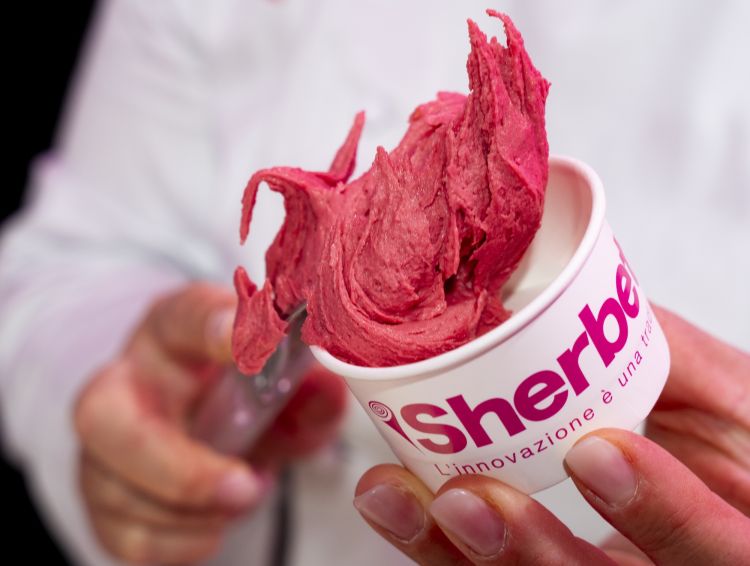 Sherbeth perché ho pensato ad un filo conduttore che lega la mia terra, l’Abruzzo, con la Sicilia: la mandorla, ingrediente principale del parrozzo» dice il maestro gelatiere.