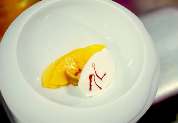Carmelo voleva caratterizzare questa portata con un gusto intenso di ricotta – racconta il maestro gelatiere - e quindi ne ho previsto, in ricetta, il 56%». La peculiarità di questo gelato è la cremosità e l’intensità del gusto, con una bella nota di affumicatura, che incontra la ricchezza della mela cotogna candita e del mandarino verde candito. A completare il gelato, pistilli di zafferano de L’Aquila Dop, e il tocco finale dello sciroppo di torsoli di mele.