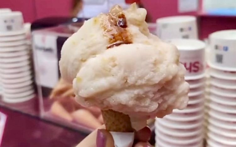 Latteria del Ringo a Martina Franca, in Puglia. Un gusto intenso, fatto di tre ricotte (mucca, pecora e capra) con una stracciata di fichi, gocce di mosto di fichi e cupeta salentina di mandorle. «Con questo gelato abbiamo voluto rappresentare la festa patronale, con le bancarelle piene di frutta secca e fichi secchi. È un ricordo d’infanzia che si rinnova nel tempo» racconta la maestra gelatiera.