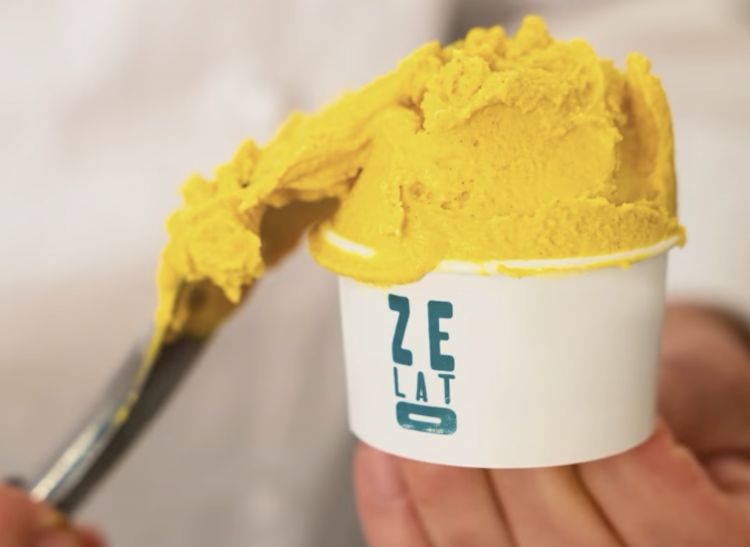 Zelato a Roma. «È la mia versione gelato del drink preferito dalle donne della mia famiglia: il Golden Milk», racconta il maestro gelatiere. La cremosità del latte è impreziosita dal gusto intenso della curcuma indonesiana (da commercio equo e solidale) e dalle note speziate di cannella. A completare il gusto, il miele di zagara dell’Etna.
