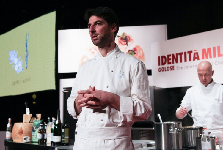 Oltre centonovanta centimetri di cuoco eretto di fronte a un auditorium pieno con un uovo, ammutolito in un silenzio sospeso, tutto proteso verso la voce di Massimiliano Alajmo, un sussurro in arrivo da chissà quali abissi di profondità. Il signore de Le Calandre ha dimostrato un’altra volta d’essere ragazzo d’altra stoffa, altra razza. Ha parlato per haiku, ma con quella incapacità tutta sua di darsi arie da predicatore. Empatico per natura malgrado la complessità del ragionamento.