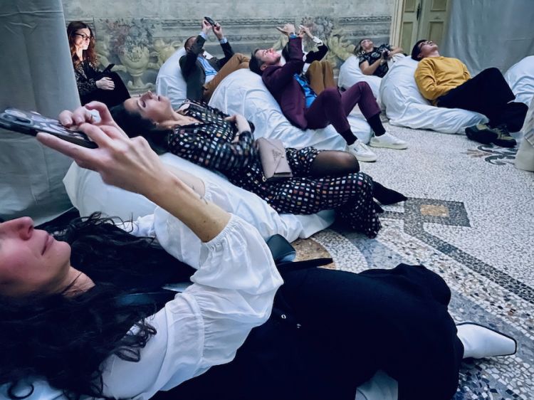 Pellegrino Artusi al posto dell’Urlo di Munch fino a distendersi su dei puff per seguire la proiezione sul soffitto di una stanza dei ciliegi in fiore e gustare un bocciolo, un assaggio di quanto scorre sulla vota a Copenhagen.