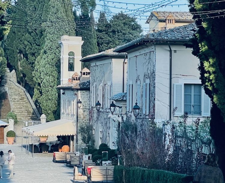 Chiara Ferragamo a livello di recupero e promozione del territorio, del suo patrimonio culturale e degli immobili sparsi un po’ ovunque, 42 suite, una spa e la piscina, due ristoranti e undici ville, la più lontana è a dieci chilometri. Poco sopra il nucleo centrale, ecco invece una cantina a tutto Brunello.