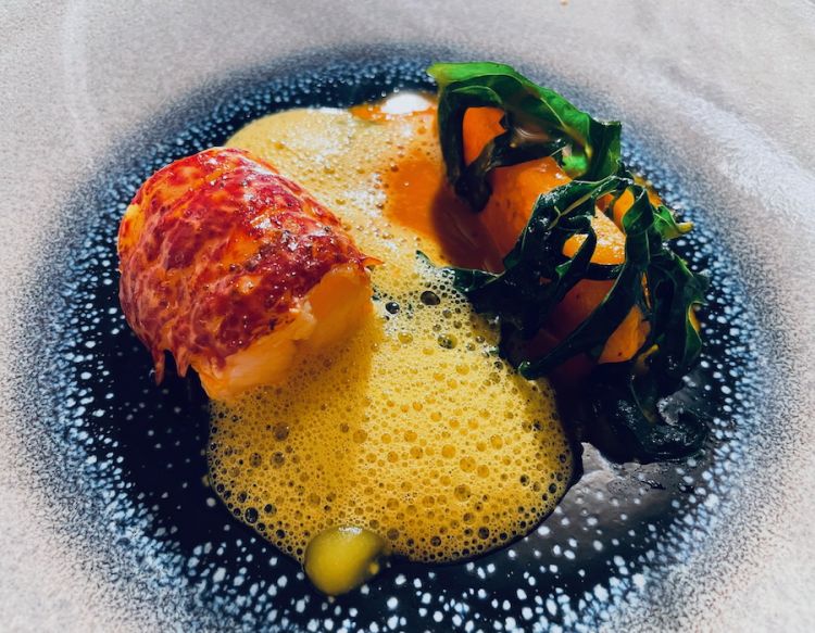 Il 9 dicembre cena precisa, succulenta, niente stranezze né effetti speciali, tutto indirizzato al centro del bersaglio. Le note sono dello chef. Due gli antipasti: Astice blu, zucca Hokkaido, minestra nera, clementine. L'astice viene cotto al bbq e servito accompagnata da una composta di