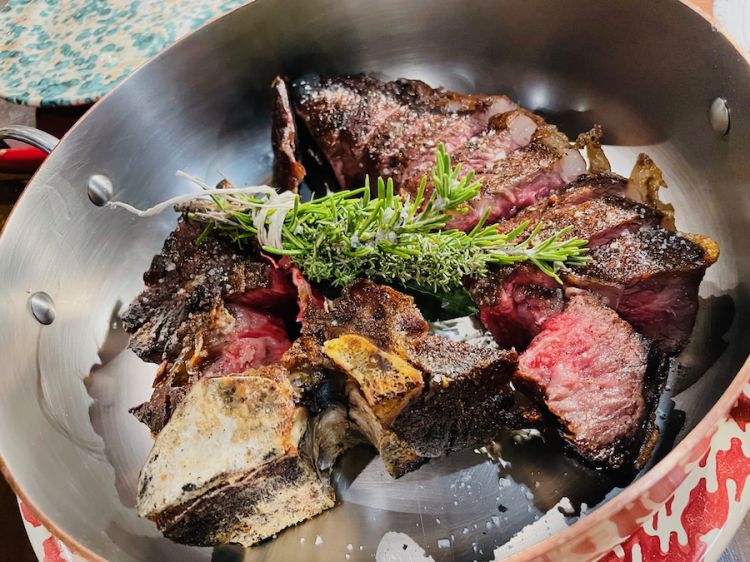 E l’orto? Immaginate uno smisurato campo da bocce, rivolto a sud, largo una decina di metri e lungo, a occhio, non più di duecento, la prosecuzione delle case che accolgono i due locali tanto che vedi sovente cuochi andare avanti e indietro per recuperare qualcosa per la cucina. E l’orto riflette il carattere di Temperini, immediato ma per nulla brusco, sorriso pronto a sbocciare, passo veloce e suggerimenti uno via l’altro. Soprattutto, Matteo non se la tira come tanti suoi colleghi, e parliamo di uno