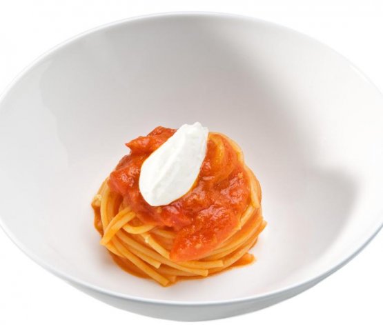 Spaghetto al pomodoro, buccia di limone e formaggio di capra di
