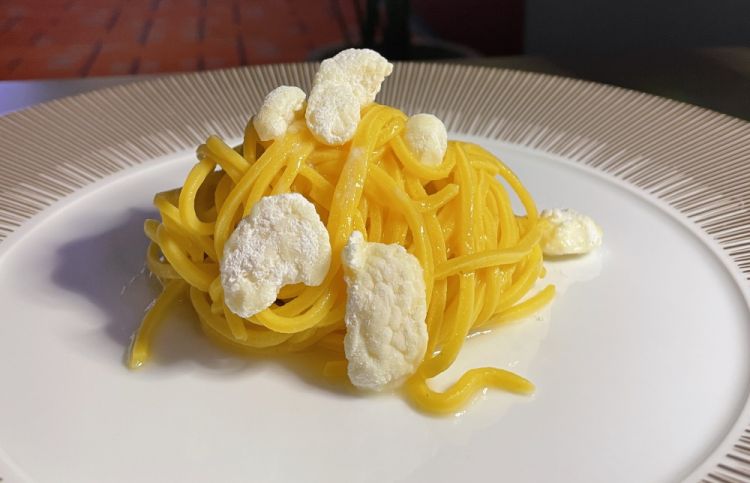 E ci è riuscito alla grande. La cucina di Di Pasquale è affascinante perché offre uno sguardo non comune sui sapori e sugli ingredienti abruzzesi, che forse istintivamente associamo sempre a toni netti e decisi: nell'interpretazione dello chef giuliese c'è da una parte grande concretezza, sostanza, ma proposta con misura e delicatezza, tra sfumature eleganti e stratificazioni molto efficaci, non solo aromatiche, ma anche di consistenze.