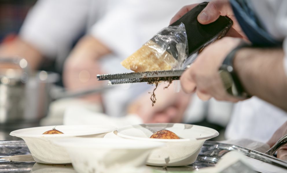 EMILIA BUN, l'ouverture firmata da Bernardo Paladini e Riccardo Forapani, e beignet di sedano rapa e polvere di spinaci a cura della cucina di Identità Golose Milano