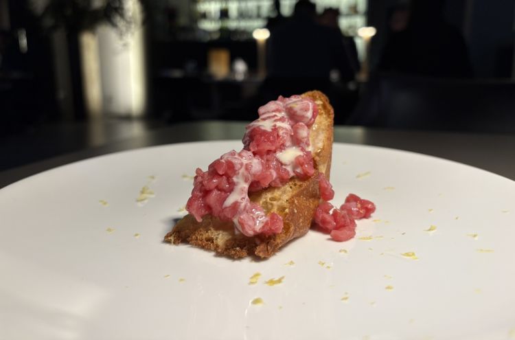 Padellino con battuta di manzo, crema di Parmigiano 24 mesi e zeste di limone firmato da