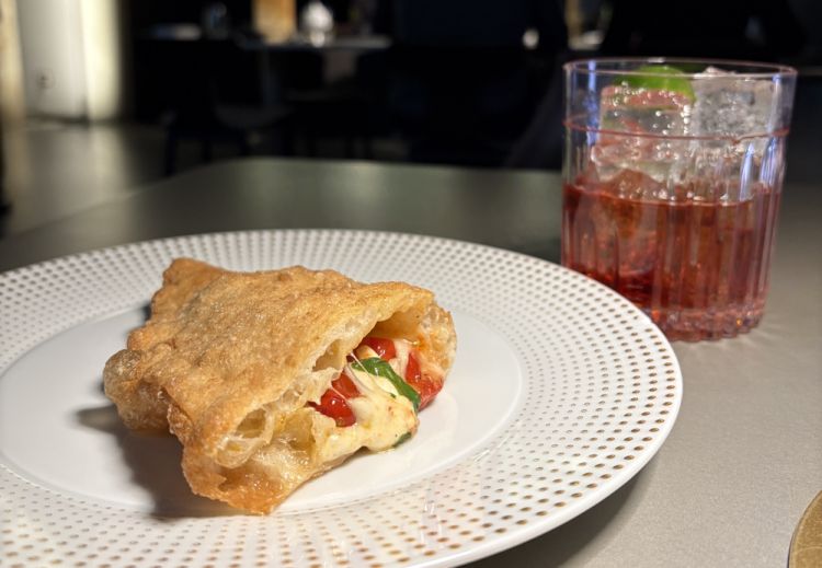 Sirabella, «ma per non proporre la solita pizza napoletana l'abbiamo declinata nella frittura: una pizza fritta con provola di bufala, datterini arrostiti al forno fino a renderli belli asciutti, pepe nero di Sarawak, Pecorino romano e basilico».
