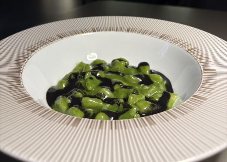 Gnocco mantecato alle erbe, seppia e salsa al nero di