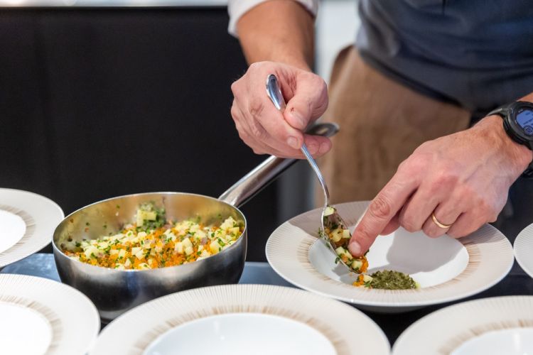 È proprio da questa condizione che nasce la sua ricerca: «A me interessa portare il territorio nei miei piatti, cercare prodotti che siano veramente di montagna. Quello che stiamo provando a fare ultimamente è cercare sapori nuovi, non tanto prodotti nuovi, ma sapori inediti grazie a tecniche di cucina, di conservazione, macerazioni. In montagna gli ingredienti non sono tantissimi, allora cerchiamo di creare un ventaglio di sapori più ampio». Sapori che diventano basi per le salse, per costruire piatti che, nelle sue parole, «siano rotondi, che abbiano quella parte di golosità, che raccontino tanto il territorio, quanto questo periodo storico».