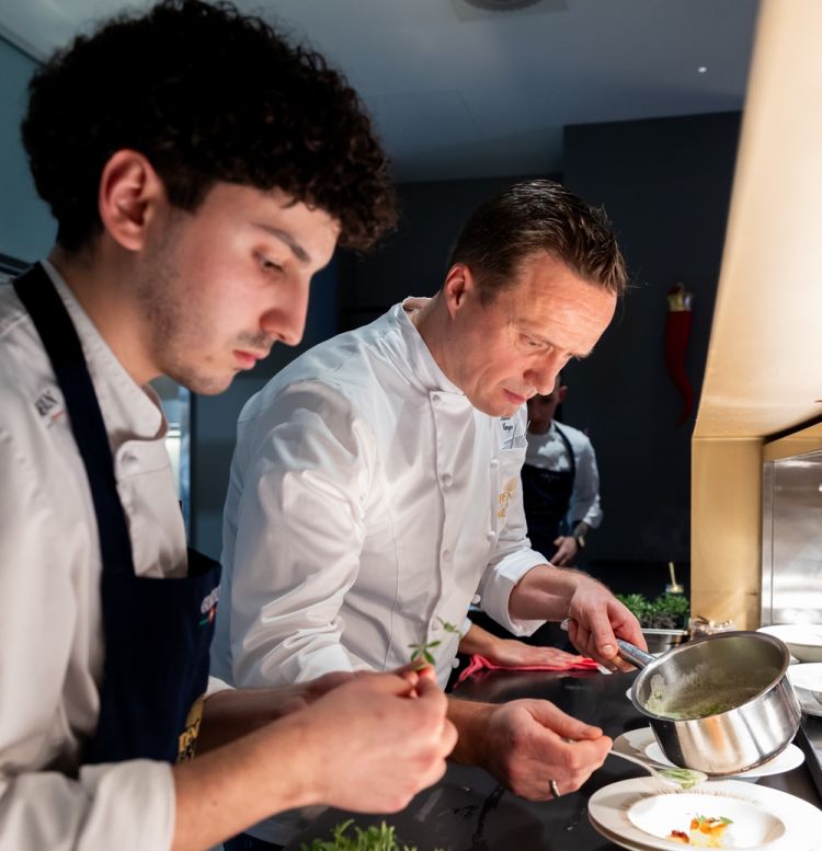Michael Mayr porta in questa serata l'esperienza maturata in Alto Adige a partire dal 2002, quando arrivò per una stagione e decise di restare. Dal 2016 guida il Gourmetstube 1897, dopo aver lavorato diverse stagioni al Quellenhof: «Una cosa che ci caratterizza è il desiderio di proporre piatti in cui i prodotti locali si incontrano con prodotti che arrivano dal resto del mondo. È una formula che riteniamo funzioni molto bene».