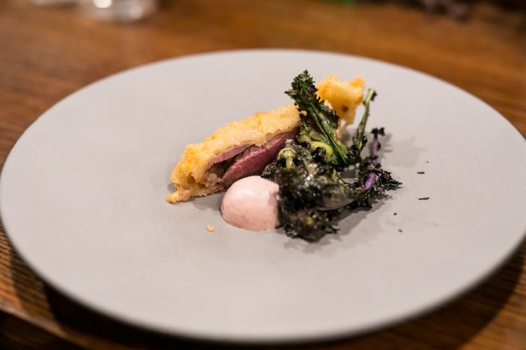 Amazon perché è resistentissimo ed è a suo agio a temperatura ambiente») ha immerso per due giorni il piccione, precedentemente lavorato con uno starter di zucchero e sale, prima di friggerlo in pastella e servirlo in tavola con una bavarese di fegato di manzo e verdura in vinaigrette all’aneto. «Nel momento dell’immersione il lievito – spiega