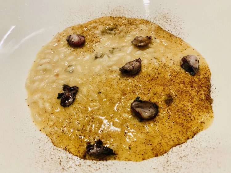 Riso cipollotto calamaro e liquirizia