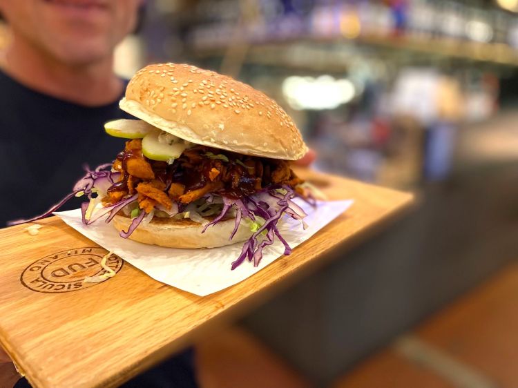 Il Pulled Planted panino con ripieno vegan arriva sui Naviglia a Milano da FUD Bottega sicula - Foto: Viani