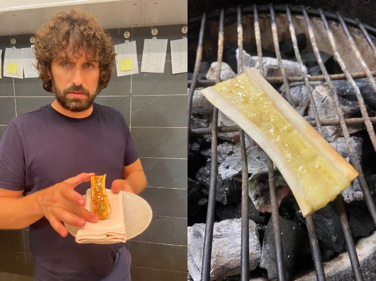 «L’inizio del percorso di creazione del Midollo di banana nasce da una prima riflessione: un tempo il quinto quarto non veniva usato nei ristoranti fine dining, ora si trova ovunque. Non è strano vedere ossa di vitello tagliate a metà con il loro midollo all’interno, da mangiare con un cucchiaio e un pezzo di pane caldo. È diventato comune. Inoltre, bisogna notare che oggi quel quinto quarto spesso costa tanto quanto un filetto.