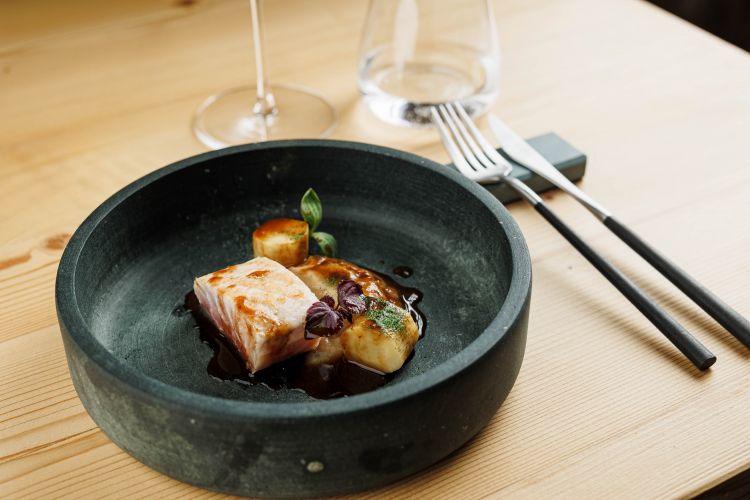 Forse il segreto non è nascere chef, ma diventarlo. Per passione, orgoglio e una visione del futuro ricca di progettualità e sostenibilità. Andrea Fugnanesi, classe 1995, è lo chef del ristorante Stua Noa Fine Dining, sulla centrale via Plan di Livigno, in Valtellina. Il ristorante è all'interno dello storico 4 stelle Hotel Concordia ed è un gioiello sia per le piccole dimensioni (massimo 12 coperti) sia per la tenacia che un anno fa ha portato alla sua creazione, già premiata con l'inserimento tra gli Ambasciatori del Gusto, l'associazione nata per rafforzare e valorizzare il patrimonio agroalimentare ed enogastronomico italiano. «Siamo gli unici Ambasciatori a Livigno – spiega orgoglioso lo chef -. In vista delle Olimpiadi 2026, la nostra prima medaglia l'abbiamo già vinta». Il giovane chef racconta come tutto ciò sia stato possibile grazie alla stretta sinergia tra lui e la famiglia Giacomelli che già l'aveva voluto al Grand Hotel della Posta a Sondrio e che poi lo porta a Livigno per dare un nuovo volto alla ristorazione dell'Hotel Concordia, sorto nel 1962 e primo tassello della Lungolivigno Hotel&Fashion.