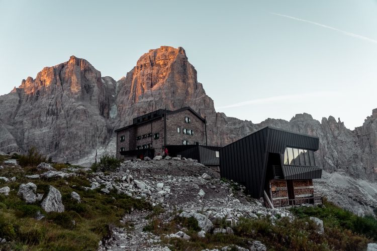 E arriviamo agli assaggi che, nel nostro caso, sono avvenuti in una cornice tutt’altro che consueta, eppure in perfetto stile Feral: siamo tra le Dolomiti, lungo il cammino che separa Madonna di Campiglio dal Rifugio ai Brentei; un’alternanza di bocconi più immediati e rustici, come la classica merenda di montagna, fino a una cena ad alta quota. Quindi, pane e mortandela della Val di Non, diaframma appena scottato alla brace profumata al ginepro; trota essiccata da accompagnare con del pane caldo e un velo di burro, il cavolo arrosto.