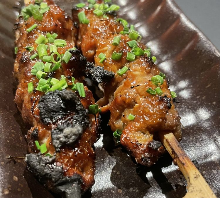 Un intreccio di consistenze che incide sul gusto, per cui un polpo carnoso, irrorato con dello jus di pollo, tenero, succulento (e per niente gommoso) evocherà una similarità molto vicina a quella delle carni dello stesso volatile presente però solo sotto forma di salsa; sapidità incisive che però si bilanciano attraverso iniezioni di dolcezza, punte di calore sprigionate da diverse intensità di piccante, lontane tracce d’amaro, in altre parole: umami; l’approccio sartoriale di alcuni piatti, come lo Spiedino d’anatra, che tale rimarrebbe se non scoprissimo che la carne viene prima sfilettata per ottenere delle fette sottilissime che vengono “ricucite” una sull’altra, quindi racchiuse nel budello; stratificazioni che, ancora una volta, incidono sulla consistenza “più strutturata”, mentre sul palato arrivano sensazioni gustative non così lontane da quelle che emanano le interiora, e sul finale erba cipollina a rinfrescare.