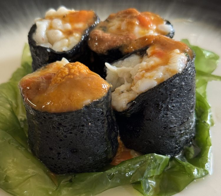 Rotolino di Scampi in Salsa di Ricci, che ricorda uno dei piatti più amati della cucina etnica contemporanea, il sushi, è entrato nel menu del