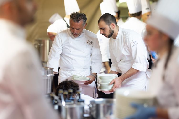 Tutti protagonisti del menu a quattro portate che vede un antipasto creato per l’occasione dal tristellato Giacarlo Perbellini, il quale ci esterna questo pensiero: «Onorato di essere qui. Cucinare per mille persone, in un contesto unico, significa trovare equilibrio.