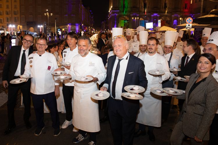A firmare l'antipasto della Cena dei Mille, appuntamento annuale a Parma, lo chef tristellato Giancarlo Perbellini di Casa Perbellini 12 Apostoli a Verona