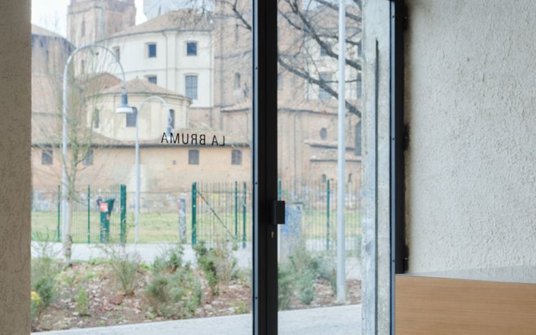 bruma, in dialetto milanese, richiami la nebbia — il locale è tutt'altro che opaco: le ampie vetrate lo rendono molto luminoso e lo mettono in dialogo diretto con il