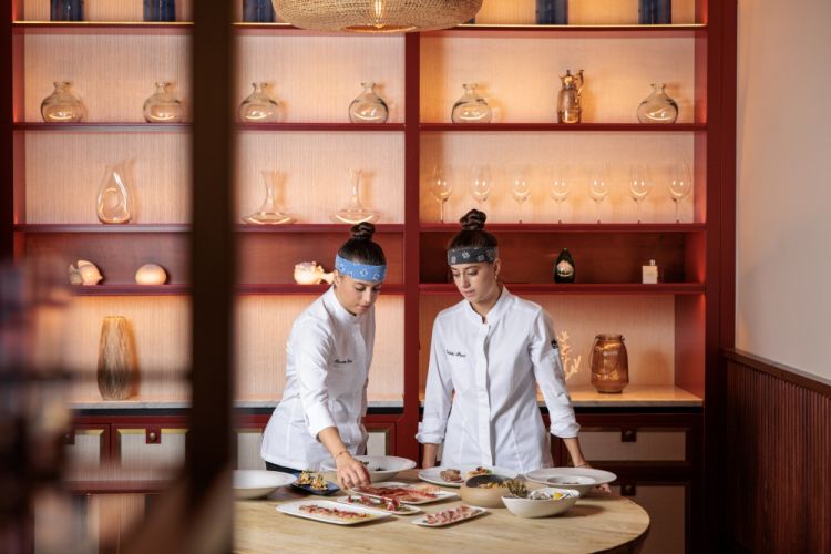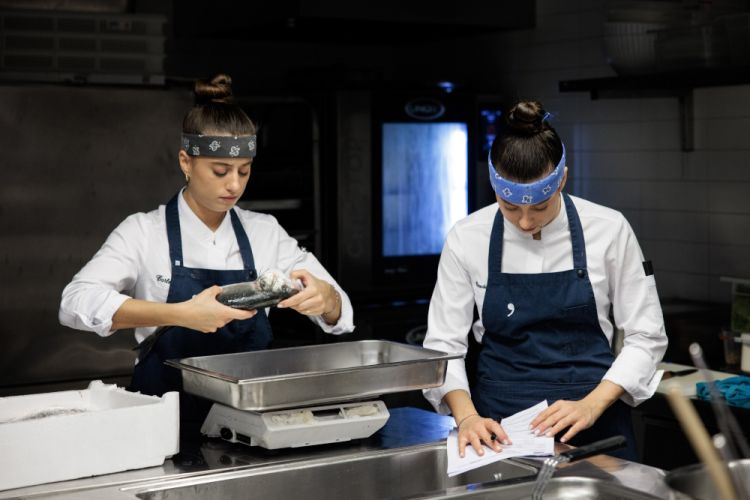 Benedetta porta con sé un'esperienza nei principali ristoranti romani di pesce: Da Pierluigi, Dal Bolognese, Baccano e Pipero a Villa Domizia, dove ha assimilato rigore, tecnica e sensibilità nella gestione del prodotto fresco. Carlotta ha iniziato invece con la lavorazione delle carni presso Reserva ed è stata sous chef da Numa al Circo. Incuriositi da questa doppia visione in cucina — anche nel senso di un quasi surreale effetto ottico guardando al di là della cucina a vista (sono identiche le due sorelle) — non potevamo non fare loro qualche domanda per conoscerle meglio e capire anche come due ragazze così giovani affrontano la direzione di una cucina.