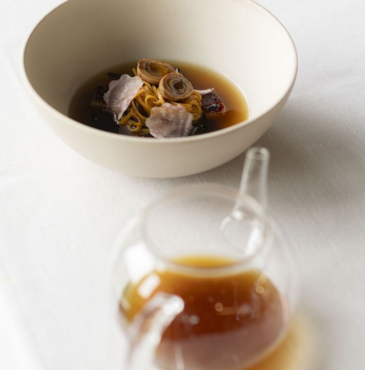 Animella, glassata al garum di lievito e aceto di mele, composta di mela cotogna, senape, rape e rapanelli. E di nuovo classici di alto livello come i