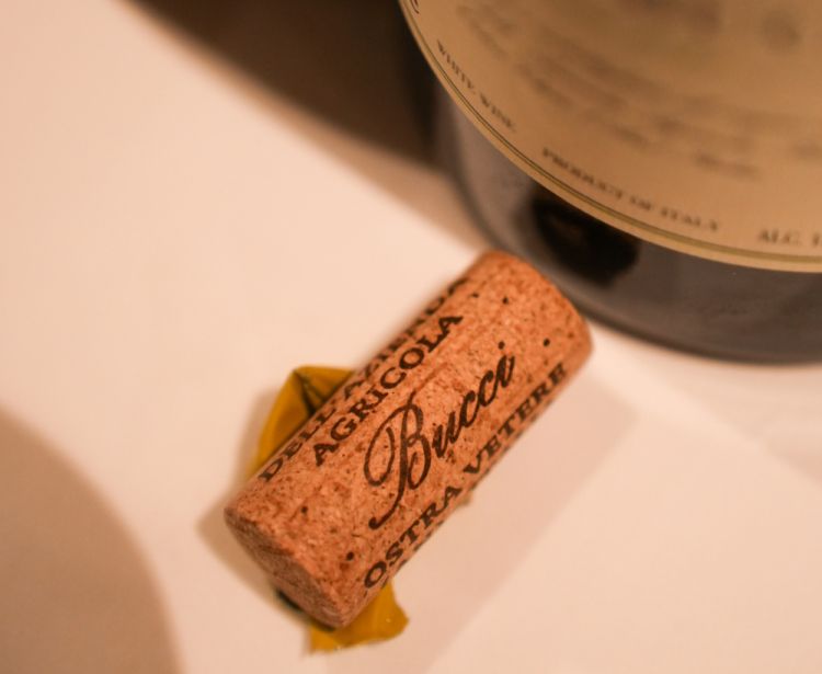 Villa Bucci dove le note di albicocca, melone e sfumature sapide sul finale lo rendono fresco e immediato. Il millesimo 2016 si presenta con un timbro più erbaceo anche se la cera d'api e gli agrumi maturi lo elevano a una freschezza inaspettata e l'abbinamento ha esaltato il