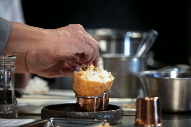 Pepe in Grani il formaggio è scomposto in più entità (grattugiato, in fonduta, in chips…) e non si butta via nulla, nemmeno le croste, in una perfetta sintesi antispreco, che perdura già dall’apertura, ormai 10 anni fa.