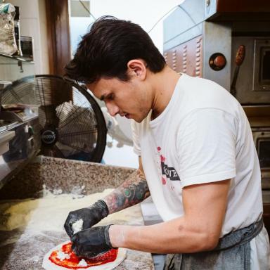 Dalle campagne tortonesi al cuore della città, Groove Pizza + Beats si è portata dietro tutto il carattere di chi non si accontenta. L’anima è quella di Simone Lombardo, che dopo l’esperienza nella sua hamburgeria genovese ha deciso di allargare la base e di affidarsi alle mani di Victor Crespo. Il risultato è una pizzeria che vive di ritmo e precisione, proprio come suggerisce il nome: le pizze nascono da un impasto pensato, evoluto, e si muovono tra ricerca e identità territoriale. Le due anime, la Tonda Evo e la C’Rock, raccontano due modi diversi di intendere la pizza: la prima è soffice, ariosa, rispettosa della tradizione ma con uno sguardo moderno; la seconda è sottile e croccante, più rock, più diretta, con quella leggerezza che non chiede permesso.