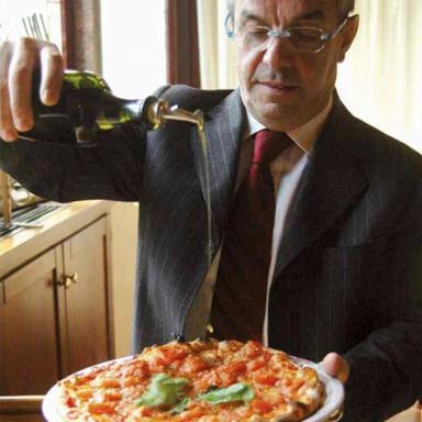 Mortadella Igp, casatella trevigiana Dop e granella di pistacchio, con fiordilatte, mortadella Igp (a fine cottura), casatella trevigiana Dop e granella di pistacchio a crudoLa pizza vegetariana