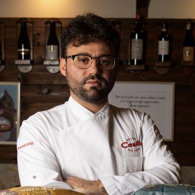 Madre terra: in cottura fiordilatte di Andria; in uscita veli di caciocavallo podolico, riduzione di sartascinello alla cerignolana, patè di olive di La bella di Cerignola, scaldatello al grano arso sbriciolato, olio evo cultivar La bella di CerignolaPerché fermarsi