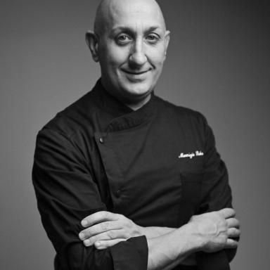 Rahù, con stufato di pomodorini di Manduria (presidio Slow Food), fiordilatte pugliese, funghi cardoncelli arrosto. A cottura ultimata, aggiunta di capocollo al vincotto, stracciatella pugliese, petali di mandorle tostate, riduzione di basilicoLa pizza dolce