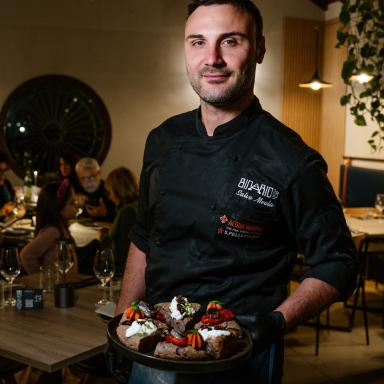 Binario 450° è nata nell’ottobre 2021 dalla ristrutturazione di un ex-deposito delle Ferrovie dello Stato. Un progetto consapevole, fondato sulla ricerca e sulla passione di due imprenditori locali: Salvatore Meola, chef pizzaiolo classe 1986, laureato in Storia e Filosofia, e Fabio Rizzo, ingegnere informatico classe 1984. Percorsi diversi che si incontrano nella condivisione di un’idea precisa: restituire alla pizza un’identità colta, tecnica e conviviale attraverso studio, sensibilità e sperimentazione.